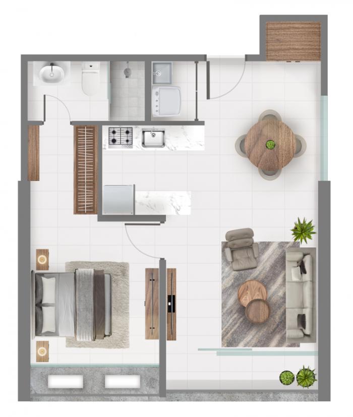espacios de 1 recámara con 1.5 baños y vistas panorámicas.