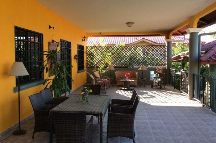 Casa en venta en alto boquete, chiriquíEsta hermosa y tranquila casa en alto boquete se encuentra en un lote doble en una comunidad poblada principalmente por amigables ex-patriotas (sin cuotas de asociación de propietarios). es fácil y barato de mantener, por lo que puede vivir allí cómodamente en la paz y la tranquilidad, sino también cerrar la puerta y salir de la casa por una semana o dos.dos dormitorios y dos baños, un generoso salón/sala de estar de planta abierta con zona de comedor y cocina, todo en una sola planta, ofrecen el tamaño perfecto para una pareja joven o más madura. pasará la mayor parte del día en la amplia terraza con vistas a un cuidado césped rodeado de flores, arbustos y árboles tropicales. toda la propiedad está vallada, por lo que no debe temer que sus mascotas se escapen o que sus vecinos la invadan.junto a la terraza hay un bohío y un segundo gazebo en una de las esquinas del jardín. un cobertizo ofrece espacio para guardar las herramientas de jardín y el carport tiene espacio para 2 coches. 2 tanques de agua garantizan el suministro constante de agua. la parcela tiene dos accesos a dos calles, uno de los cuales es una gran puerta a través de la cual se puede introducir fácilmente material en la propiedad.construido en 2008 está exento de impuestos hasta 2032.la comunidad de brisas boqueteñas está a sólo 9 km de boquete y 23 de david, lo que hace que las compras, el cuidado de la salud y el entretenimiento sean accesibles. el clima es agradablemente fresco.