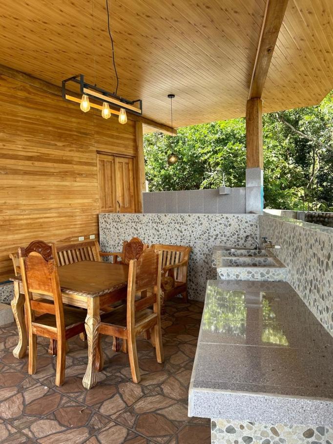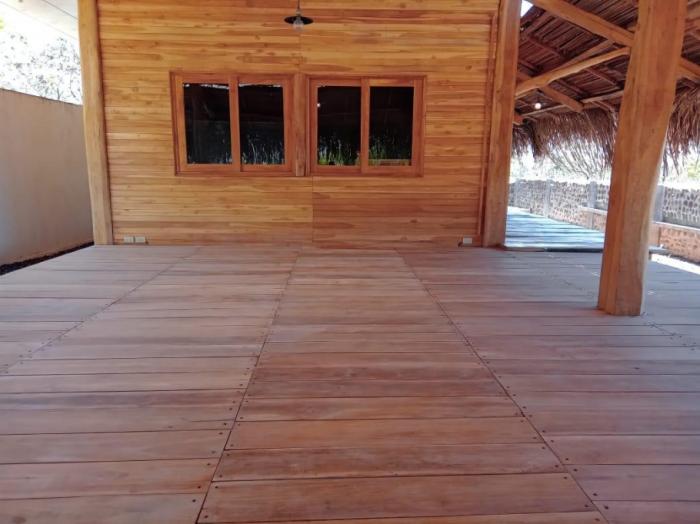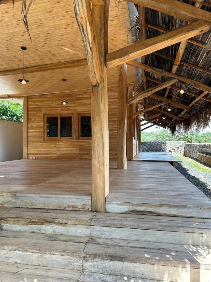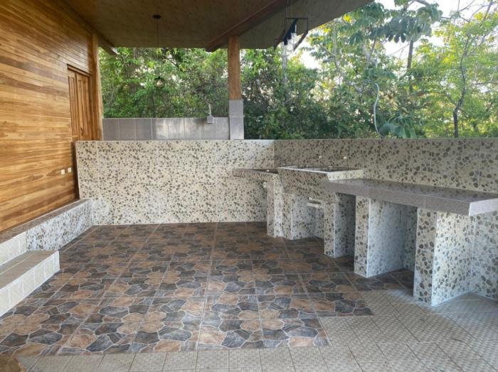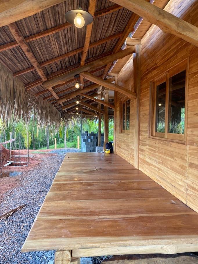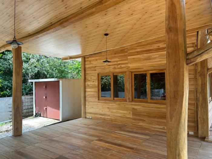 la casa de huéspedes de estilo tropical es una estructura de madera de teca de 1 dormitorio y 1 baño con una gran terraza abierta y cocina, ideal para relajarse por las mañanas o las tardes con las frescas brisas que vienen del océano pacífico. terminada en 2024, la casa de huéspedes está construida con maderas duras de alta calidad, una base sólida, con una estructura de vigas de madera gruesas, paredes machihembradas, falso techo y suelos de porcelanato importado, ofreciendo un ambiente auténtico y cómodo. también hay espacio de estacionamiento para 2-3 vehículos para la casa de huéspedes, además de un gran trastero y un tanque de reserva de agua.