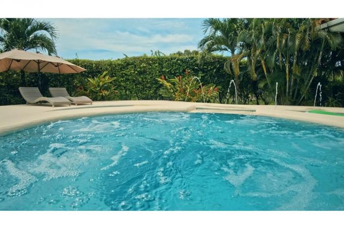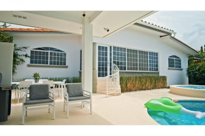 Venta de casa de playa en coronado, chameárea de terreno: 1000 m2área construida: 416.31 m23 habitaciones suite master (completas con baños)1 habitación de empleada con baño independiente.sala comedor con techo de doble altura, baño de visita, cocina completa con todos los equipos electrodomésticos, área de lavandería y 3 cuartos de almacenaje de despensas, las paredes son de bloque repellado y acabadojardín delantero con portal y áreas verdes.dos cuartos de almacenaje en esta área.jardín trasero con piscinabohío de mampostería o área de recreación con espacio para mesa de 6 a 8 sillas, mesetas con estufa, fregadero, nevera, estanterías, baño completo, equipo de asado, hamacas y tumbonas. pared con instalación para tv.estacionamiento con piso de concreto y capacidad para dos autos dentro y dos afuera.área de jardinería, árboles frutales de naranja y mandarinas, matas de limón, matas de plátanos y matas de papayas, plantas ornamentales.la casa está en perfecto estado, tiene sistema de regadío electrónico y automatizado. sistema de bomba automatizado para toda la casa y pozo de agua con bomba sumergible y todo el sistema de bombeo de la piscina es americano y automatizado. cámaras de vigilancia en todo el exterior de la casa.la casa está libre de gravámenes y no mantiene deudas de electricidad.esta casa está en el paraíso y para poder quedarte solo tienes que llegar.valor total $ 625,000.00
